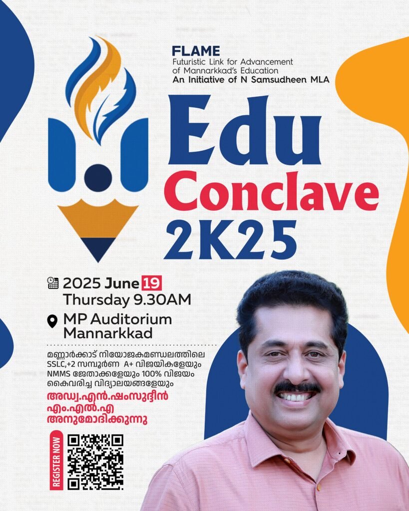 FLAME Edu Conclave 2025 2025 June 19 Thursday 9.30AM @MP Auditorium Mannarkkadമണ്ണാർക്കാട് നിയോജകമണ്ഡലത്തിലെ SSLC,+2 സമ്പൂർണ A+ വിജയികളേയും NMMS ജേതാക്കളേയും 100% വിജയം കൈവരിച്ച വിദ്യാലയങ്ങളേയുംഅഡ്വ. എൻ. ഷംസുദ്ദീൻഎം.എൽ.എ അനുമോദിക്കുന്നുRegister NOW